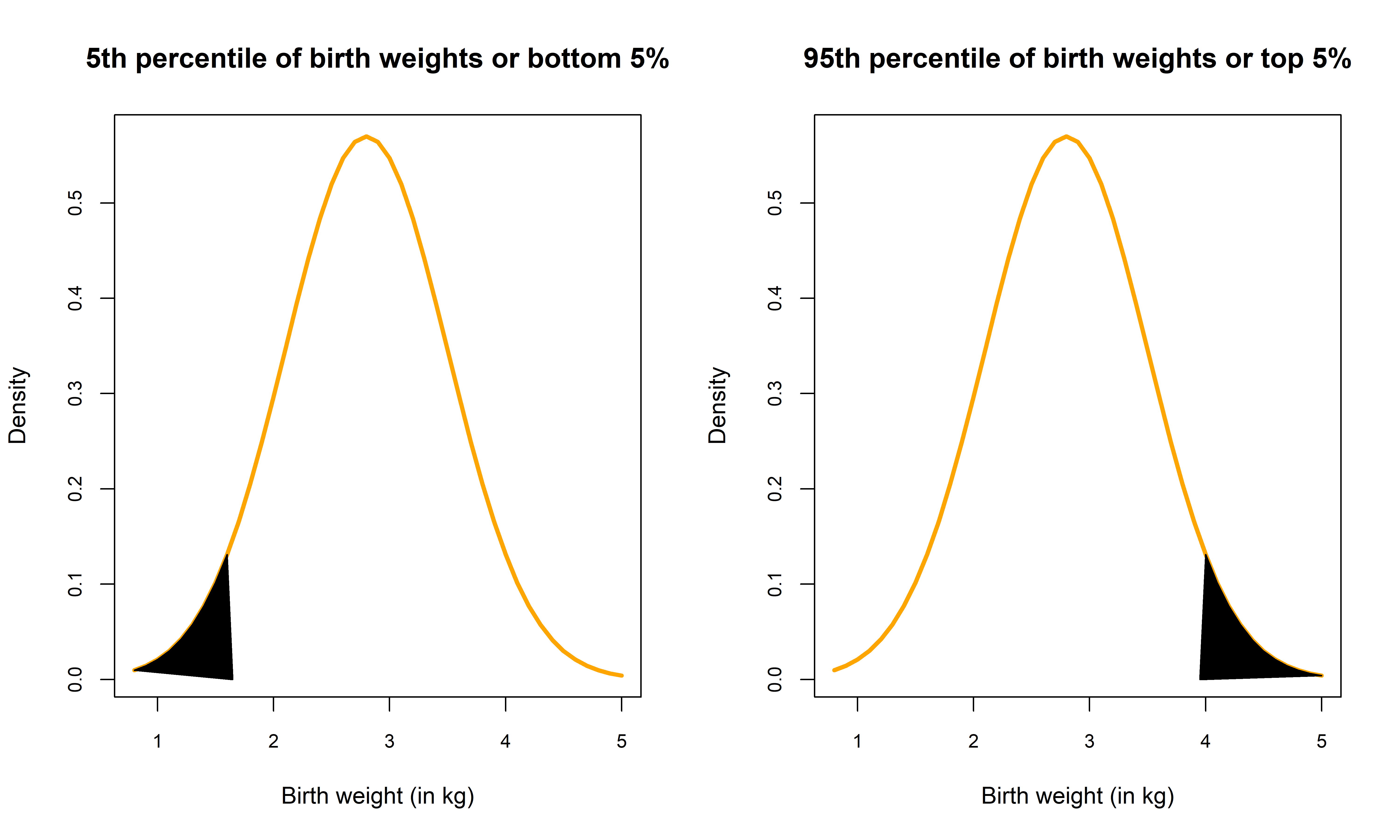 The distribution below represents the probability of the bottom 5% and top 5% of birth weights respectively