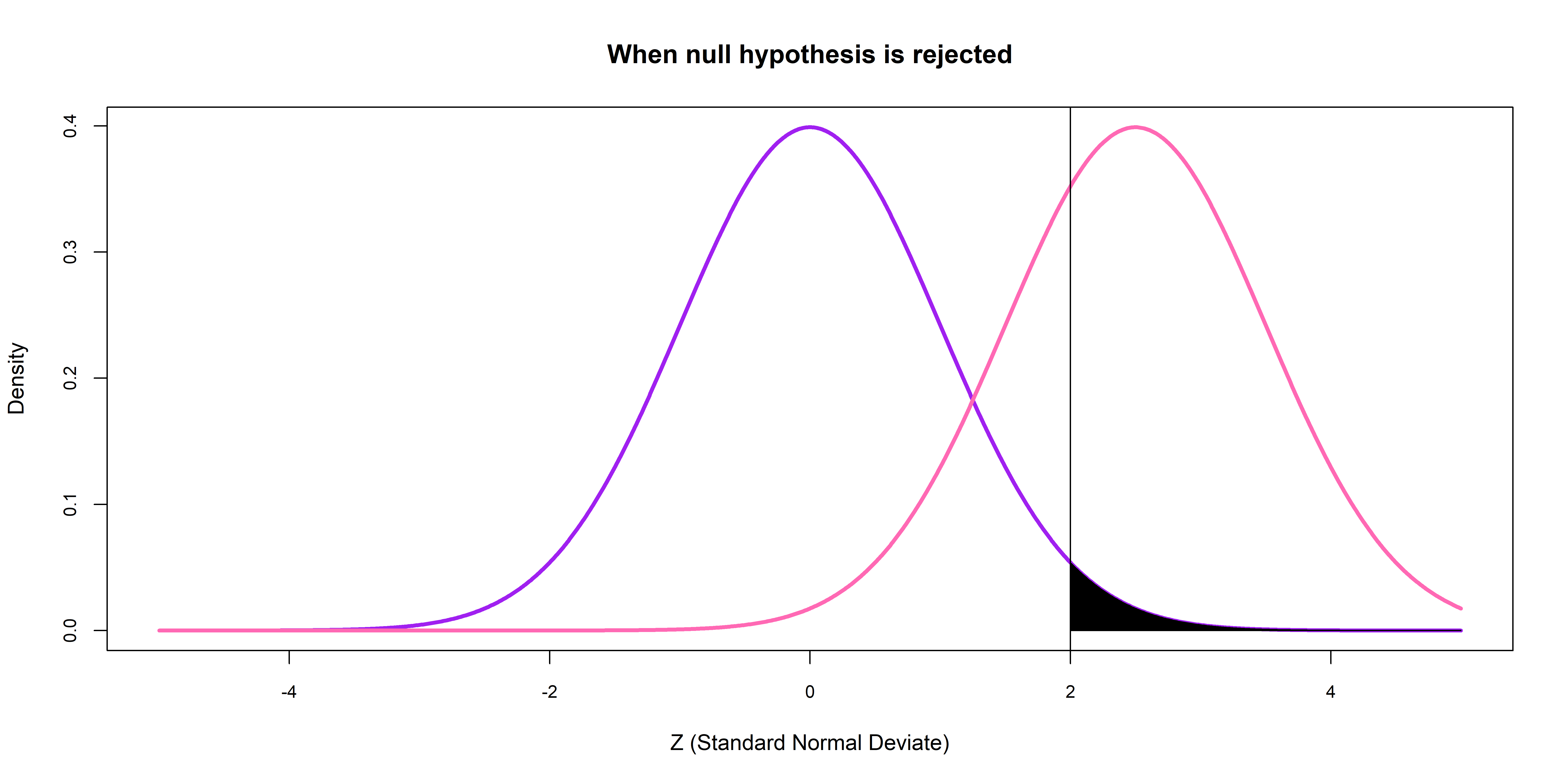 Another alternative is to convert the \({Z_{calc}}\) to a p-value which can be compared to the set \(\alpha\). If the p-value falls within the rejection region, i.e. p-value is smaller than the \(\alpha\), then the null hypothesis is rejected for the alternate hypothesis.